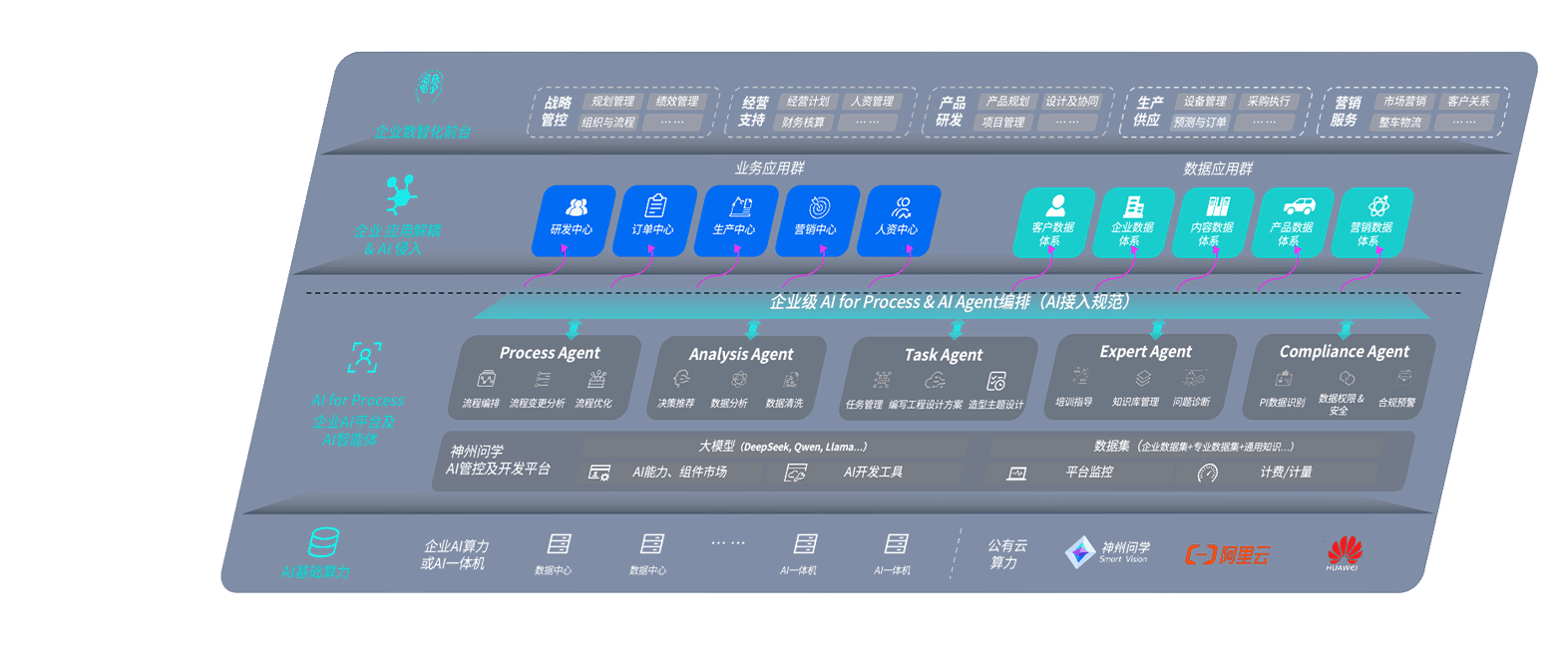 NG娱乐问学智车解决方案是一套基于AI技术的汽车行业智能化系统,,,覆盖从底层算力到顶层AI应用的全栈方案。。方案由算力层、、、模型层和应用层组成:算力层,,,方案支持多种一体机配置,,,具备云端灵活部署、、、、多云适配以及动态优化计算资源的能力;模型层,,,NG娱乐问学平台版提供了企业级AI应用一站式构建与管理平台,,,,支持基于后训练强化技术的汽车企业专属模型的训练、、评测和运营;应用层,,,,NG娱乐问学DeepSeek版提供包括超级员工、、智能招采、、智能营销、、智能客服、、、、AI for BI等一系列解决方案,,可助力汽车行业实现数字化转型,,让管理更智能、、响应更敏捷。。